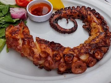 We have an extensive seafood and meat menu. All year round you can find fresh tiger prawns, lobsters, oysters, calamari, octopus and etc. We offer many different types of fish in many sizes as well. We offer live music every night between 8pm - 11:59pm. Some days a belly dancing show will be included with our live music.